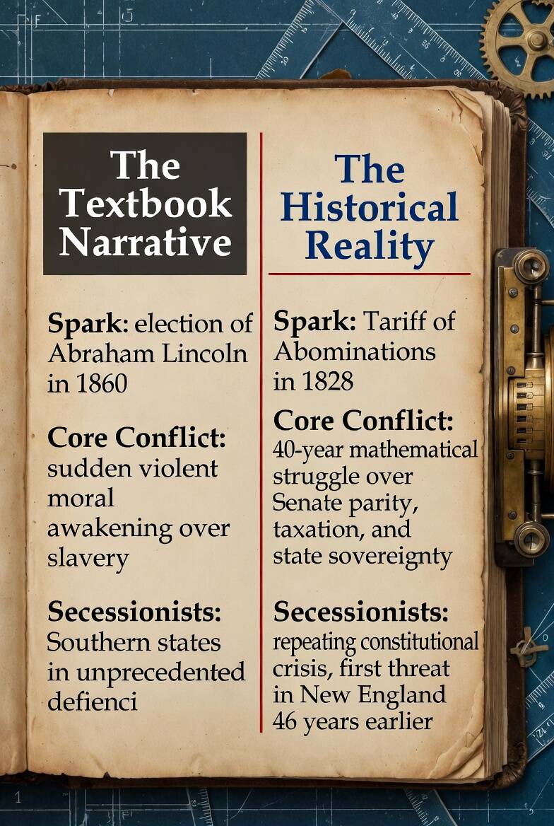You have been told the story starts in 1860. It does not. It starts in 1828. And before 1828 makes sense, you need to know what happened in 1814. Because the South was not the first region to threaten leaving the Union. Not even close.