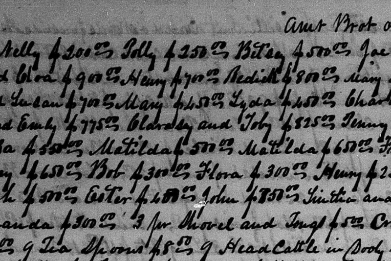 James A. Bryan passed away in May 1861. An inventory of his property was made for division among his heirs. These are their names and values; some writing is illegible.